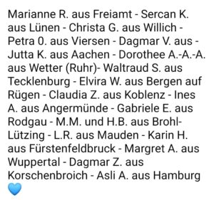 Die Paketeingänge aus den letzten Monaten veröffentlichen wir auf dieser Seite, auf Facebook & Instagram sowie im WhatsApp-Status. Für die Spendensachen, die uns über die WOLLTaxis erreichen, bedanken sich die Fahrer: innen bei der Abholung in unserem Namen. Du hast übrigens immer die Möglichkeit, Deine Handarbeiten vor dem Verschicken in unserer Facebook-Gruppe oder auf Instagram zu zeigen.