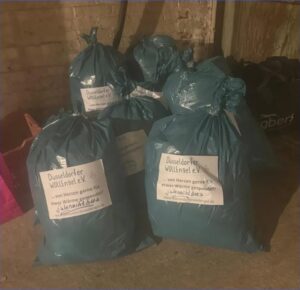 10.11.25 – …und wenn Heike schon mal unterwegs ist, dann hat sie ein paar Tage später 9 Säcke mit bestellten Wollsachen an die Aidshilfe Düsseldorf e.V. und Care 24 soziale Dienste übergeben.
