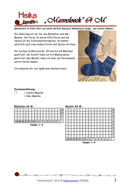 Die liebe Heike hat uns diese tolle Strickanleitung für Socken zur Verfügung gestellt. Ihr findet Heike übrigens auch auf Instagram (heike.kreativ_eifel) und bei ravelry (eifelstern). Ihr Shop dort heißt Heike kreativ.